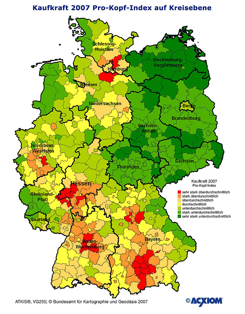 Während das gesamte Kaufkraft-Volumen in Deutschland laut Acxiom-Untersuchung im Jahr 2007 die fast nicht vorstellbare Summe von voraussichtlich 1,522 Billionen Euro betragen wird, sinkt die Kaufkraft in der deutschen Hauptstadt.